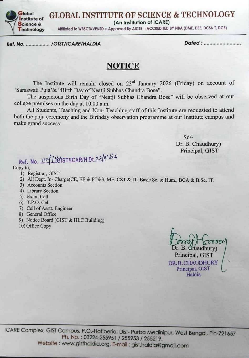 At GIST, one of the top Polytechnic Colleges in West Bengal, we take immense pride in our commitment to fostering excellence in engineering education. Situated in the vibrant landscape of West Bengal, our institution stands as a beacon of innovation and academic distinction.